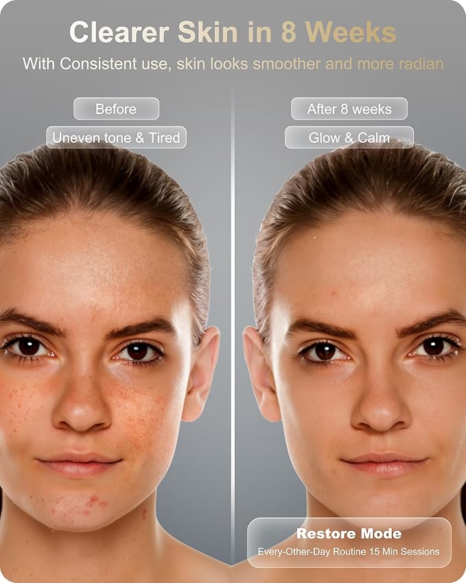 - 【ANTI-ACNE & AGING CARE】3 Science-backed modes: Firming (Red+Infrared), Clarity (Blue Light) & Restore (Mixed Light). Offers full 15 min light therapy suitable for all skin types, 3-5 times per week. Choose the modes according to treatment needs.
