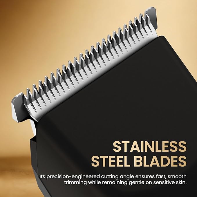 - High-Quality Stainless Steel Blades: This professional beard trimmer is equipped with replaceable stainless steel blades that ensure a smooth cutting experience without pulling or irritation, making it suitable for all skin types, including sensitive skin