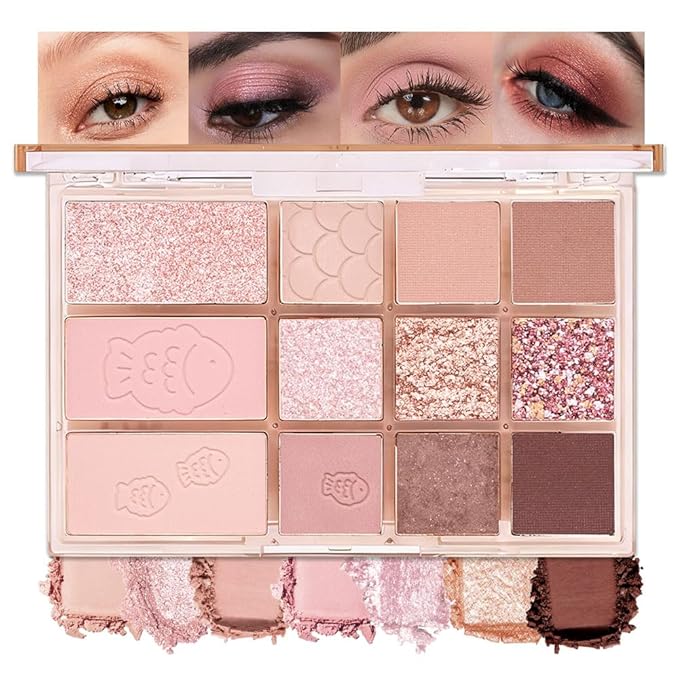 SUAKE Nude Pink Eyeshadow Palette, Matte & Shimmer, High Pigmented 12 Colors Brown Purple Eye Shadow Primers for Eye Makeup, Korean Powder Palet de sombras de ojos (04# Red Bean)