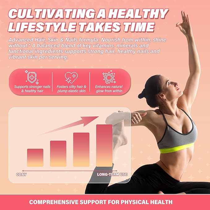 - Stronger Nails & Whole-Body Wellness: Biotin, Zinc, and Vitamin C help nails grow stronger and resist brittleness, while D3, K2, and Ca-AKG support bone health and daily nutritional balance for overall wellness.