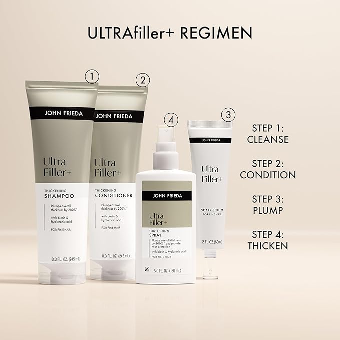 - MORE THAN HAIR SPRAY - Try the whole ULTRAfiller+ line–all three products (thickening spray, shampoo, conditioner) give the best results