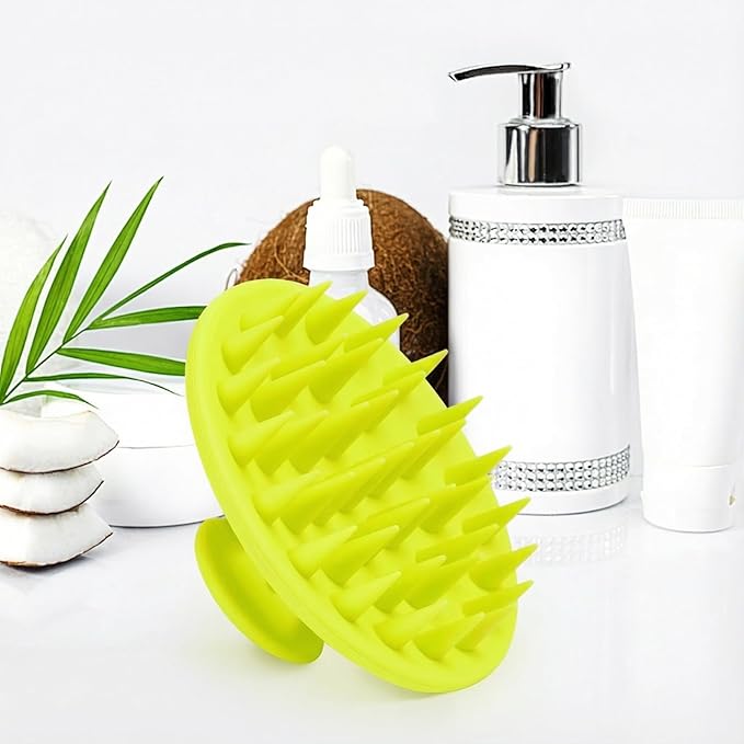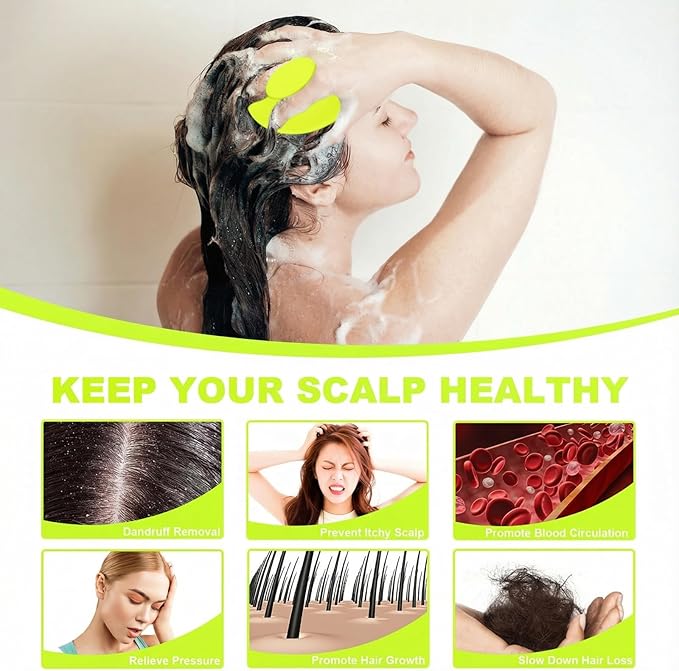 Silicone Scalp Massager Shampoo Brush, Scalp Brush for Hair Growth & Dandruff Removal, Hair Scrubber Scalp Stimulator Exfoliator Brush with Soft Bristles for Wet Dry Scalp Care (Fluorescent Green)
