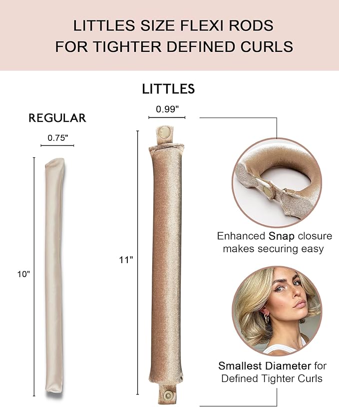 - Little velvet hair rollers to sleep in - the perfect hair styling tools solution for women achieving a more pronounced, tighter, defined heatless curls bouncy look. Ideally 0.99 inch travel sized hair wand curling iron for short hair, long hair, medium hair, thick hair, fine thin hair and natural hair. The soft jumbo flexi rods set deliver hair volume and bounce heatless curls overnight with ease. Lightweight and easy to use, they offer a versatile velvet heatless curling.