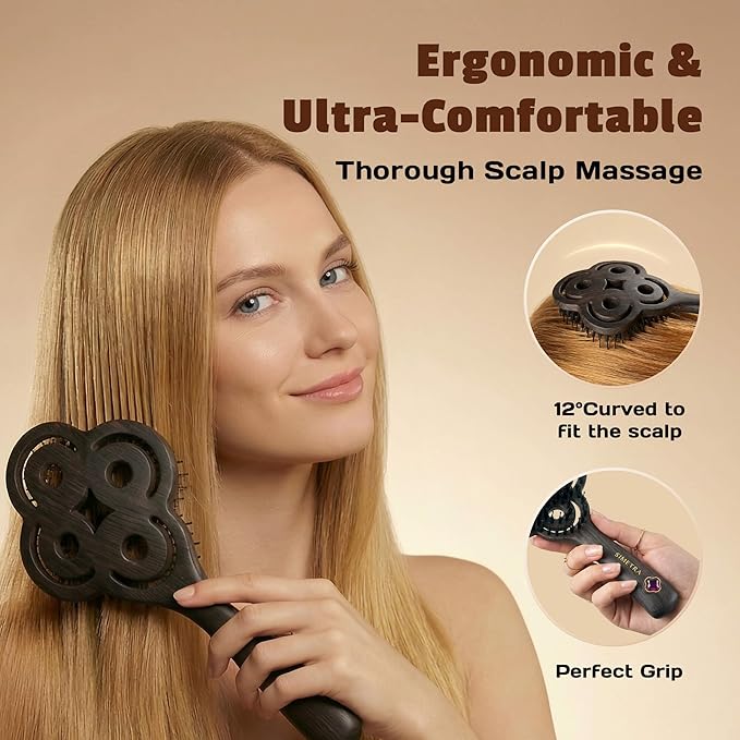 - Ergonomic Comfort - Designed with an 8.5x4.3x1.5in ergonomic handle that fits perfectly in hands, Simetra hair brush has a curve that conforms to the scalp, allowing for a more thorough scalp massage and providing unmatched comfort.