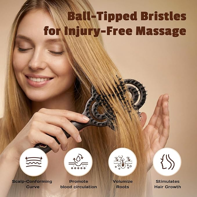 - Scalp Massage & Hair Health - The gentle boar bristles of this detangler brush deliver a soothing scalp massage, boosting blood circulation to reduce hair loss, promote regrowth, and nourish roots for thicker, healthier hair for all ages.