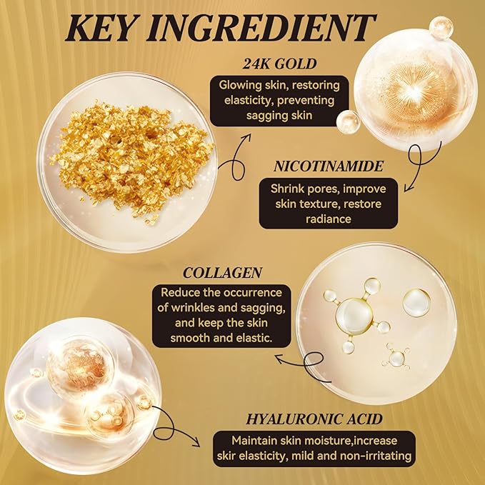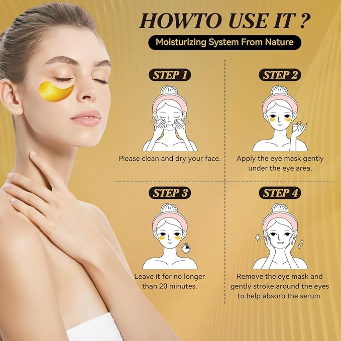 - 3️⃣ Nourish skin with a 24k gold eye mask formula plus collagen and hyaluronic acid; this eye mask skincare routine supports a plumper-looking under-eye area without a greasy residue.
