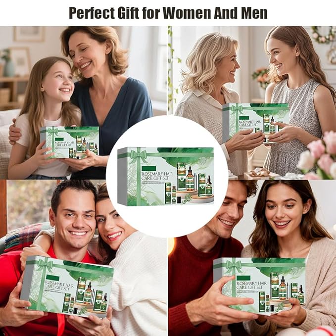 Rosemary Hair Care Gift Set with Essential Oil,Spray and Roller,Rosemary Hair Oil Kit for Strengthening,Nourishing,Scalp Care,Restoration Damaged Hair and Hair Thickness,Gift Box Packaging