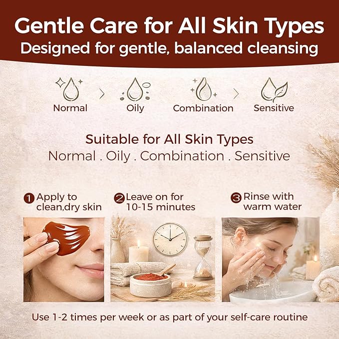 - Gentle Clay Mask for All Skin Types: Designed for oily, combination, dry, and sensitive skin types, this easy-to-rinse clay mask fits seamlessly into weekly self-care and skincare routines.
