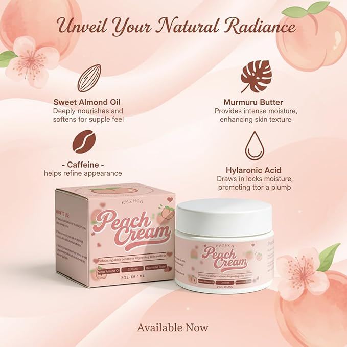Peach Firming Body Cream,Hydrating,Fast-Absorbing,Lightweight Formula,Enhancing skin's contours, for Legs,Thighs,Hips,Arms,Belly & Butt,2 fl oz